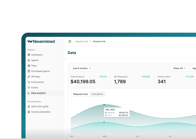 Nevermined Pay delivers bank-grade enterprise-ready metering, compliance, and settlement so every model call turns into auditable revenue. Key capabilities include: